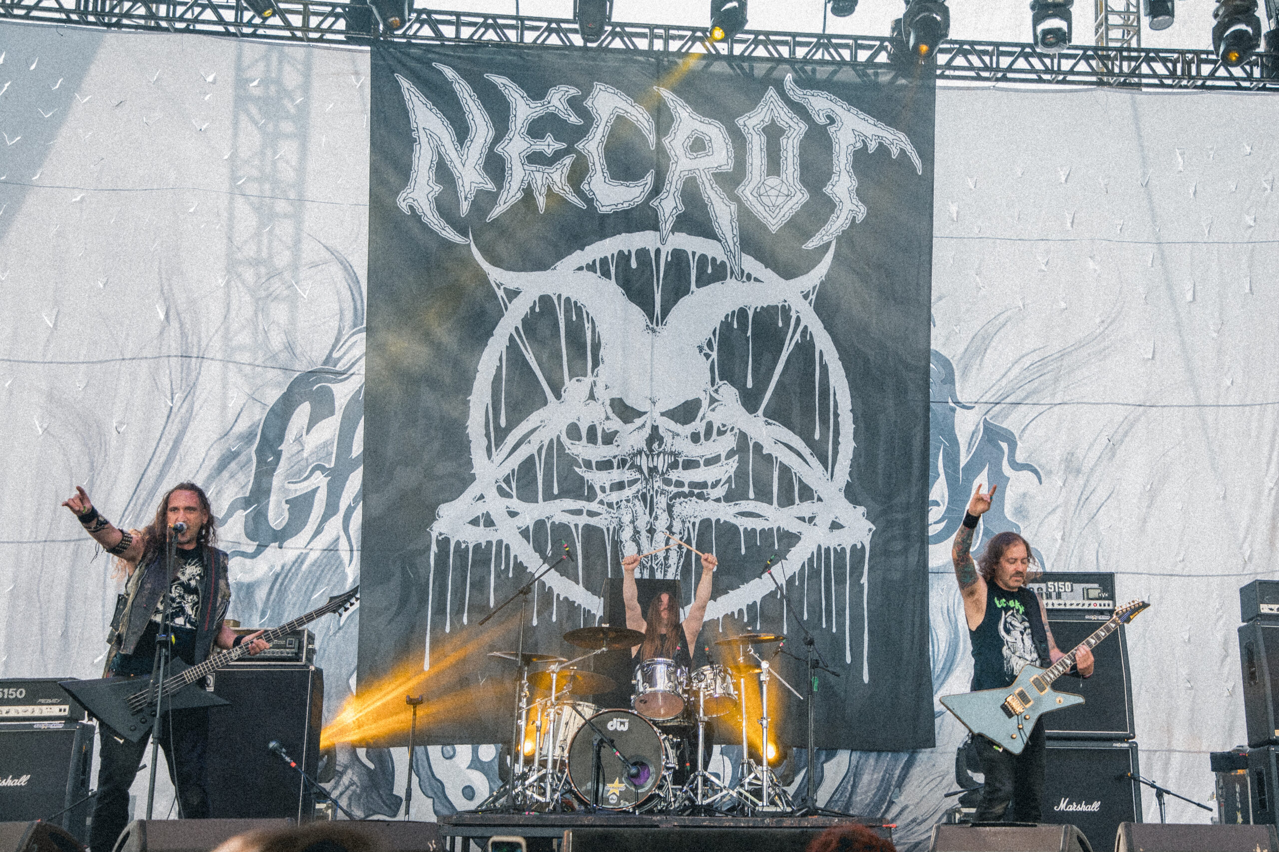 A las 16:10 del domingo 07 la brutalidad hecha rola volaba los sesos de todo ser vivo existente en el poliforum de León aquella tarde, desde el comienzo los rifts de muerte dejaron ver por qué NECROT se ha posicionado como una perra banda necesaria y de culto en todo amante del metal de muerte su show fue una brutalidad que prendio a propios y a extraños quien los conocía ya se orgasmaba con su chingoneria y quien no también, sin lugar a duda otro de los grandes aciertos de esta ediucion numero IV del CANDELABRUM METAL FEST
