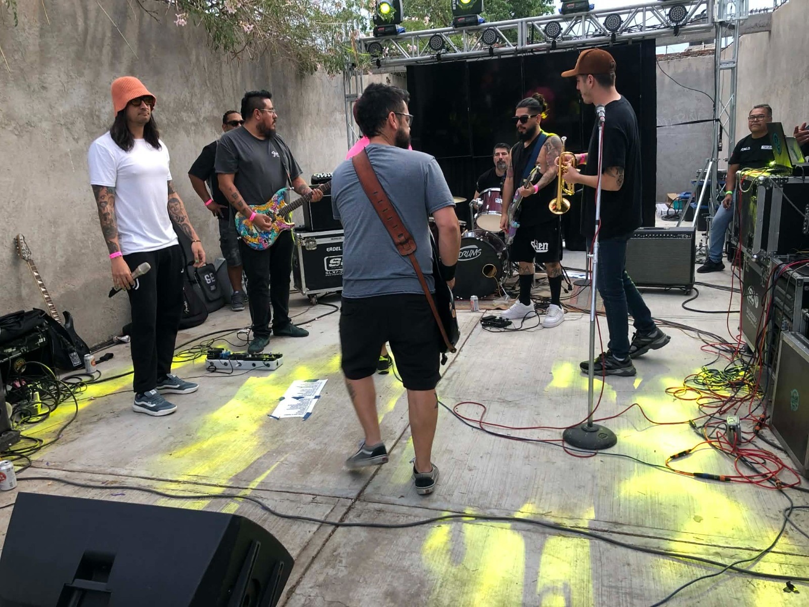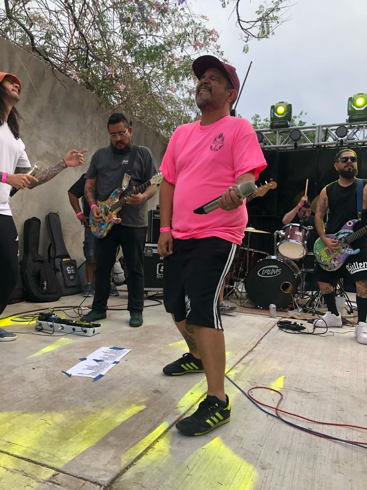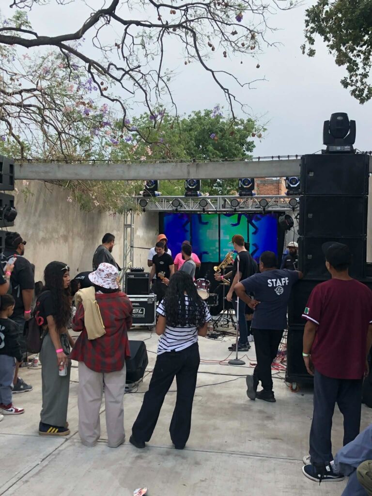 Asistí a este evento con tres amigos más, y nuestra llegada fue justa para alcanzar a escuchar a Ruido de la calle, banda originaria de la ciudad de las fresas, encargada de abrir el evento. Algunas personas tomaban pulque, unas más cervezas o uno de los tantos antojitos que también se vendían en el spot. El sol bajaba de a poco y la sombra que se proyectaba era la adecuada para que la gente pudiera estar bailando y disfrutando del show que recién iniciaba.